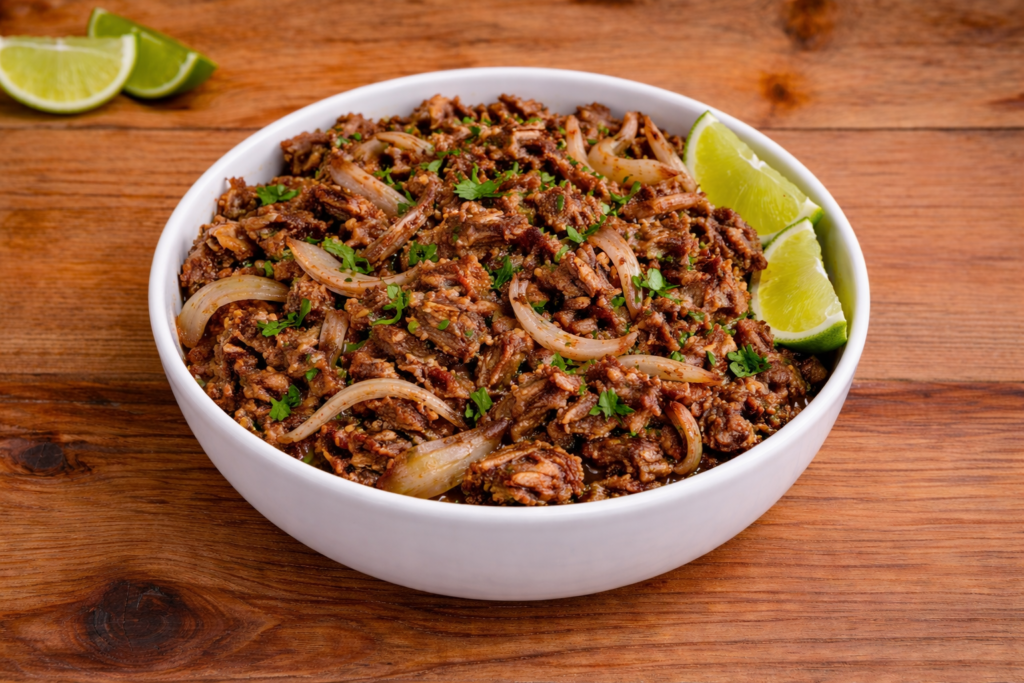 Shredded steak marinated in garlic and lime, then pan-seared until crisp and aromatic. A bold, savory favorite.